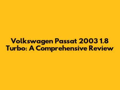 VW Passat 2003 1.8 Turbo: Review, Specs, & Common Issues