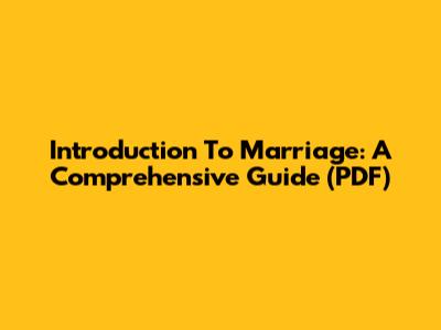 Introduction To Marriage: A Comprehensive Guide (PDF)