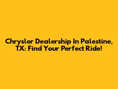 Chrysler Dealership In Palestine, TX: Find Your Perfect Ride!