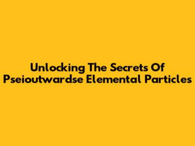 Unlocking The Secrets Of Pseioutwardse Elemental Particles