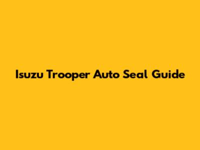 Isuzu Trooper Auto Seal Guide