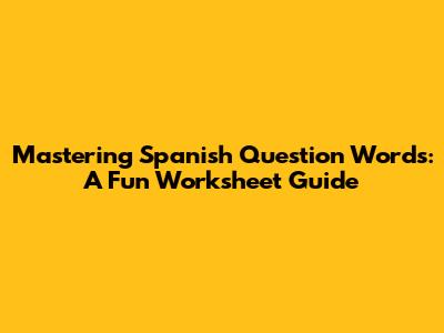 Mastering Spanish Question Words: A Fun Worksheet Guide