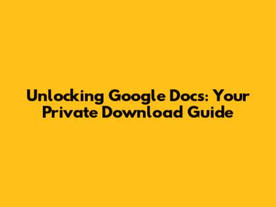 Unlocking Google Docs: Your Private Download Guide